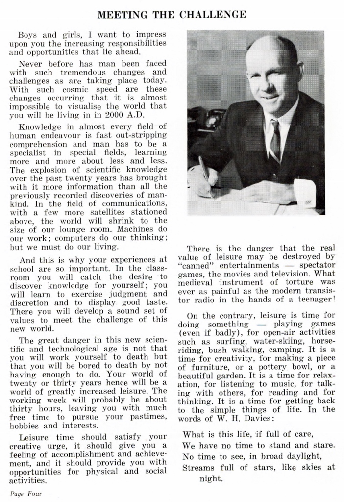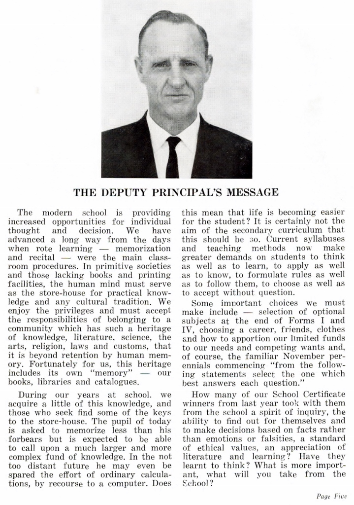 WORDS FROM THE PRINCIPAL AND DEPUTY PRINCIPAL - 1966