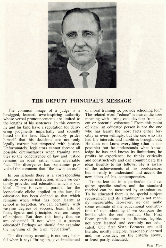 WORDS FROM THE PRINCIPAL AND DEPUTY PRINCIPAL - 1967