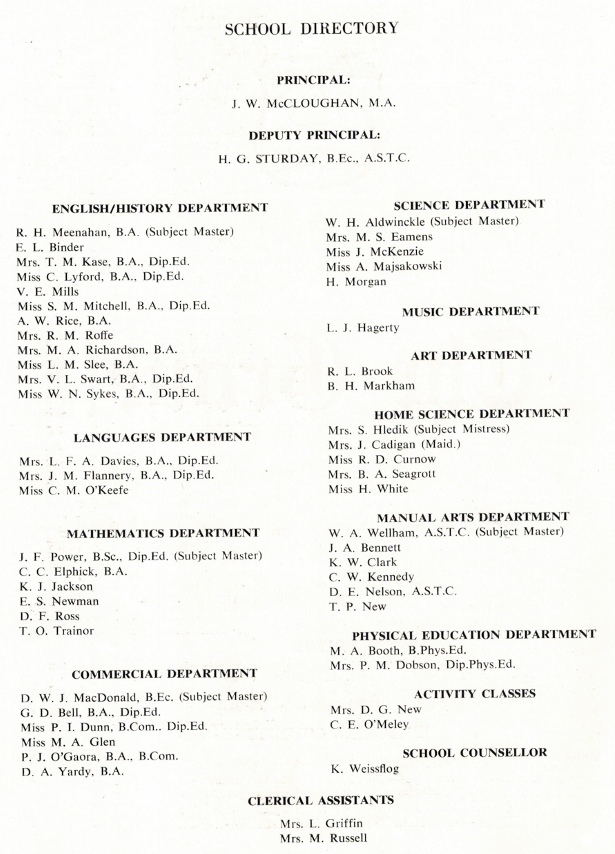 STAFF PHOTO AND DEPARTMENT DIRECTORY - 1965