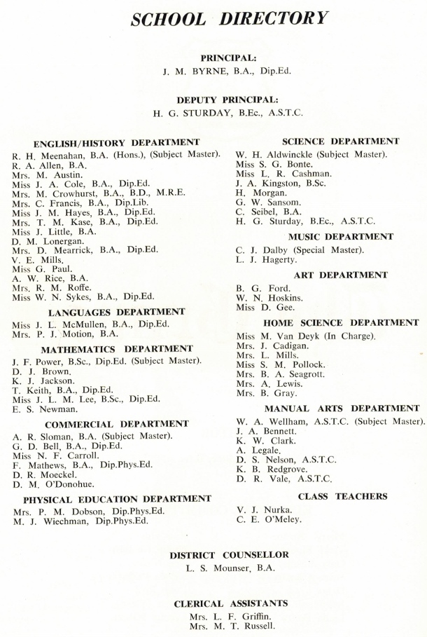 Seven Hills High School 1st Form of 1964
